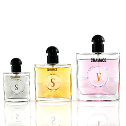 Venta al por mayor 30ml 50ml botella de perfume vacía 100 mL botella de vidrio de perfume cuadrado con bomba rociadora de plata dorada