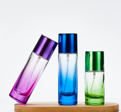 Botella de perfume redonda azul degradado personalizada 30ml 50ml 100mL botella de perfume en aerosol botella de fragancia con tapa de plástico